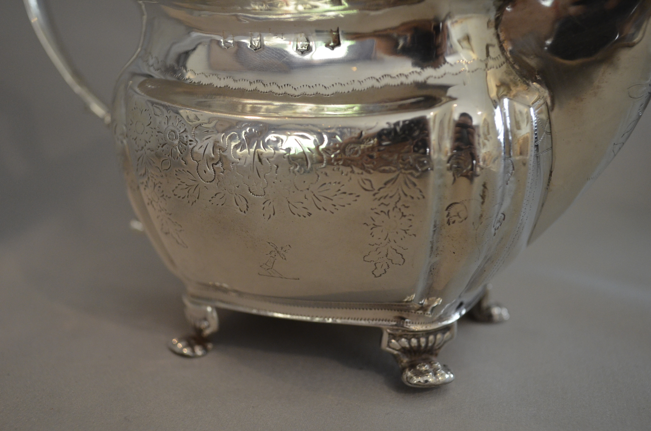 Silver Four Piece Tea Set in Bauhaus style, hallmarked Birmingham, 1946 by William Sidley. Good weight